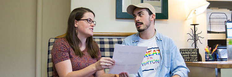 | Students meet with their advisors regularly during scheduled advising times and open times throughout the semester. Advisors will refer students to the many support services offered at the University to help ensure academic success, including the Academic Achievement Center, Registrar's office, Financial Planning, Career Development, Residential Life, Health Services, and the Counseling Center. |