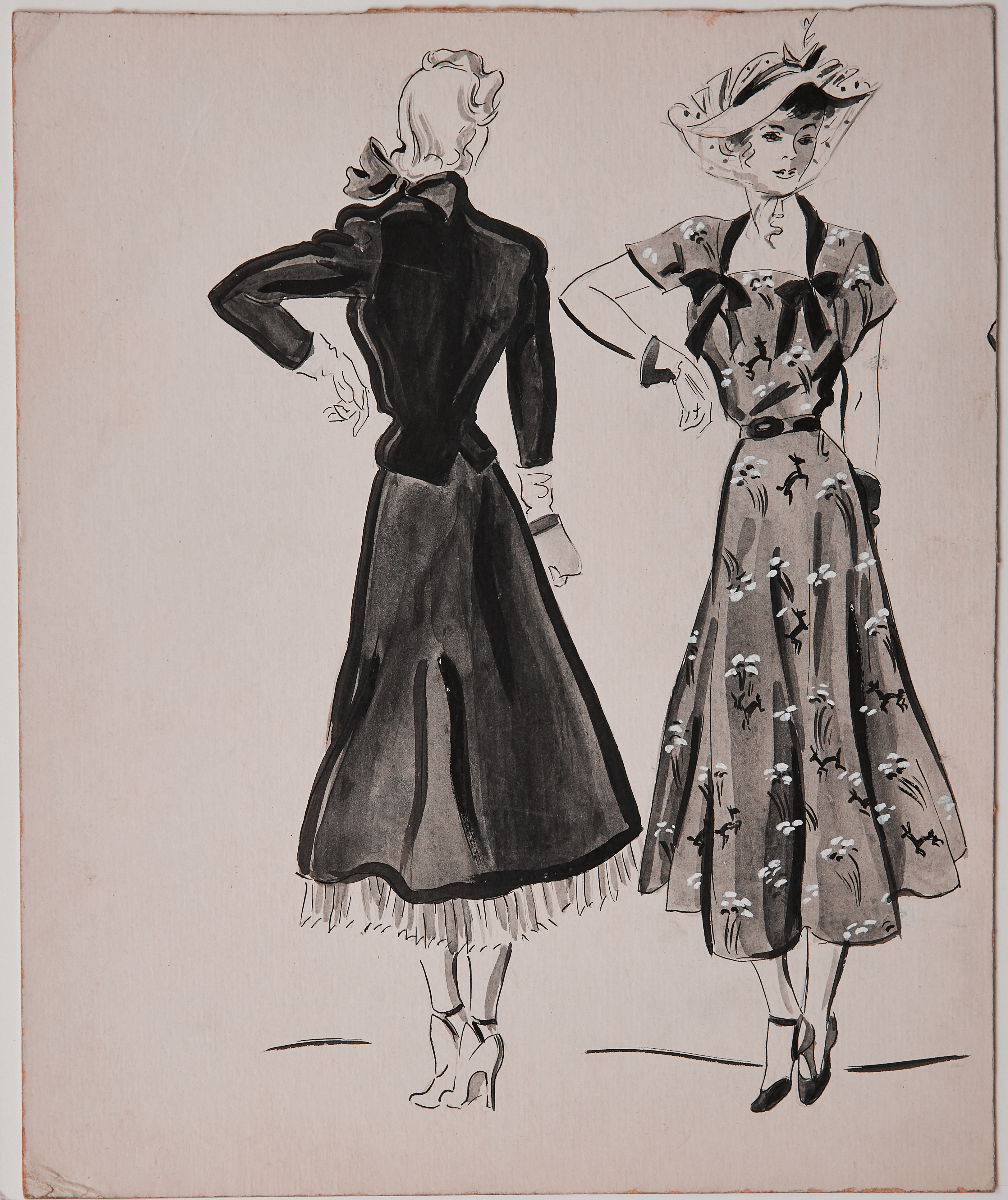 Emphasizing techniques essential to creating two-dimensional fashion design renderings, this course develops skills related to drawing the fashion figure, illustrating original design ideas through various media, rendering textiles and developing technical drawings. Often physical pieces from the Lasell Fashion Collection are brought into the classroom, where students have the opportunity to draw actual artifacts from specific periods in time. The Lasell Fashion Collection also provides fashion illustrations and advertisements from both the 19th and 20th centuries to use as reference.