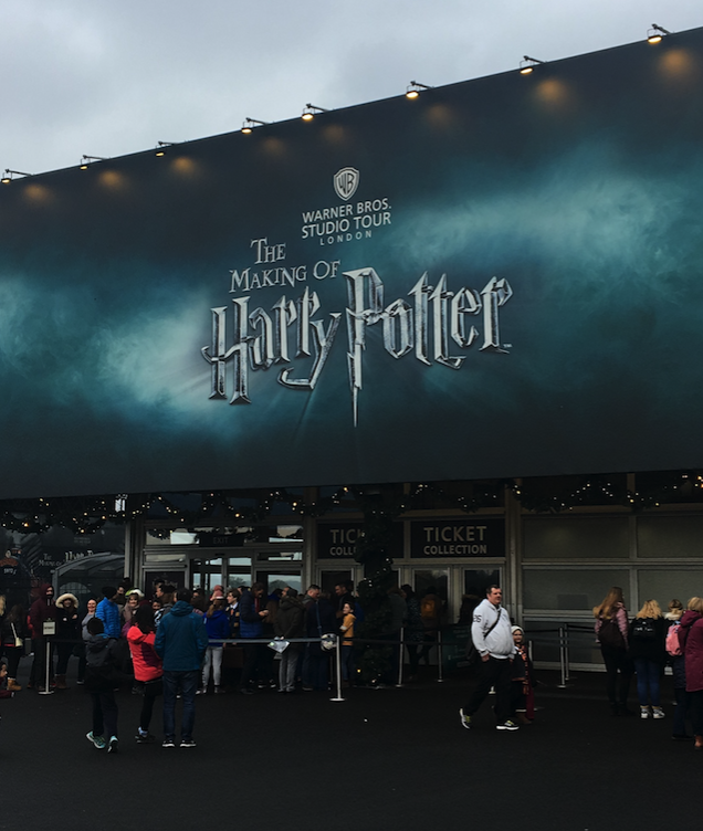 When we got to the location, I was so excited again to go inside and see it. This was going to be the second time for me to see it, but this time my sister was with me and she likes Harry Potter even more than me. When we got inside, I was so overwhelmed seeing it again. After security and walking to the main entrance of the building, our tour group was brought into an movie theater room. In this room they played a clip of Harry Potter, Hermione, and Ron. When the clip ended, they lifted up the screen and we saw the doors of the Great Hall. During that time I looked at my sisters face to see her reaction. She was excited just like me. The doors opened right into the Great Hall and it was incredible to see. I was actually surprised because the hall was narrow and long but on screen it was huge and much bigger. In the hall there were two of the long tables out with fake food on it to show the setting of what it would have looked like. Since Christmas was right around the corner, they had Christmas trees put up and everything was all decorated, just like in some of the scenes when it was Christmas time in the films. After that room we saw so many other things from the movies like the invisible car, their booms sticks, wands, hats, wigs, the train, 9 ¾ sign, behind the scenes of how they created the magic, Harry Potter's house and even some of the rooms where they filmed scenes and so much more.