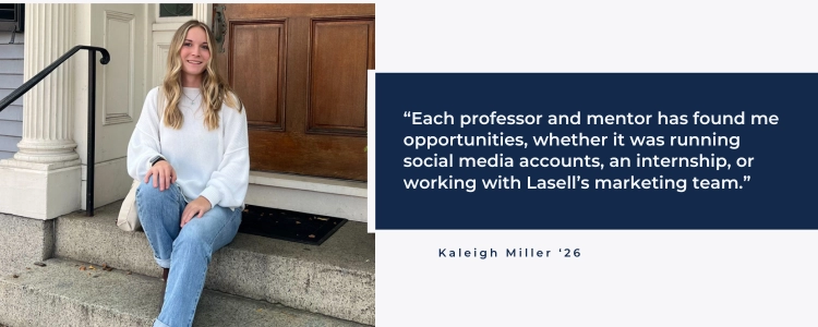 The marketing program I chose here at Lasell has led me to many different opportunities. Each professor and mentor has found me opportunities, whether it was running social media accounts, to an internship, or working with the marketing team here at Lasell. Lasell really sets you up for success and helps you build so many connections along the way.