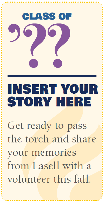 Hold the Torch High (HTTH) volunteers have made phone calls, sent emails, and composed handwritten notes in an effort to connect with all 17,000 Lasell grads. What has resulted is a web of interconnected stories and experiences spanning decades of Lasell history.