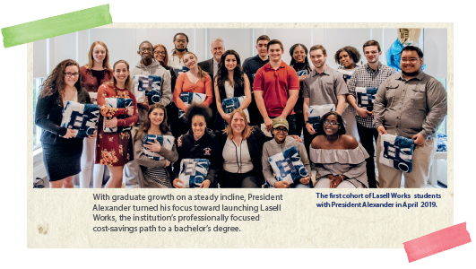 Michael A.: As early on as 2011, we recognized that the biggest upcoming problem in higher education would be the cost of attendance. We started making plans early on to manage that. That is part of where the growth of our GPS programs came from - that expansion helped subsidize the cost of granting more financial aid at the undergraduate level. Then, we had to strategize other ways to keep a high quality, private, four-year education with a student-first focus all at a significantly lower cost. That is no mean feat. We piloted the Sophomore Alternative Semester for two years before launching Lasell Works. It is possible, if the program works the way we intend it, that this could not just change Lasell, but all of higher education.