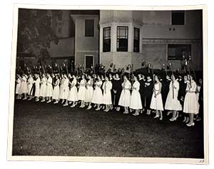 When Gail Winalski Burd '58 graduated, seniors wore their caps and gowns to the Torchlight Parade.