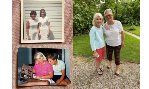 Bev Landros Bley (pictured left) lives in Fredericksburg, Virginia, and has a small summer home in Eastport, Maine. Through DNA testing, she learned that she has two half-sisters and many cousins. Her four children are spread out around the country, but they try to get together at Christmas time.