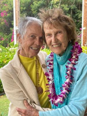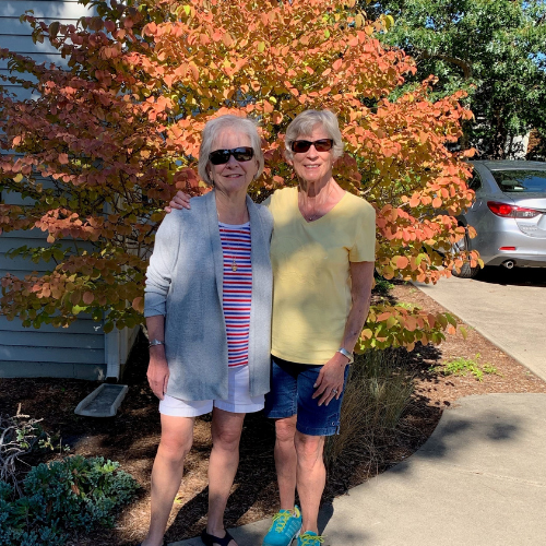 Laura Jensen (right) enjoyed a September lunch in Chapel Hill, North Carolina, at the home of Susan “Connie” Constantine Buonocore ’65 and her husband, George. She writes, “Due to COVID, it had been some time since we were together, so it was nice to reconnect. My 80th birthday week celebration was filled with cards, laughs, memories, long phone conversations, and more food and drink.”