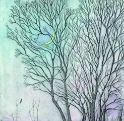 MARGO LEMIEUX, M.F.A., professor emerita, created a copperplate etching, “Winter Twilight,” (left) that is on display at the Southern Vermont Art Center. Her cooperative studio, Full Tilt Printmaking Studio, is now located at the Mother Brook Art Center in Dedham, Massachusetts.