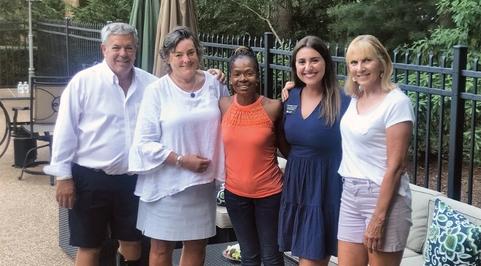 Parents Council Co-Chair Linda Peters P'21 welcomed nearly 50 new parents and families to the Lasell family during a summer event at her home on Cape Cod.