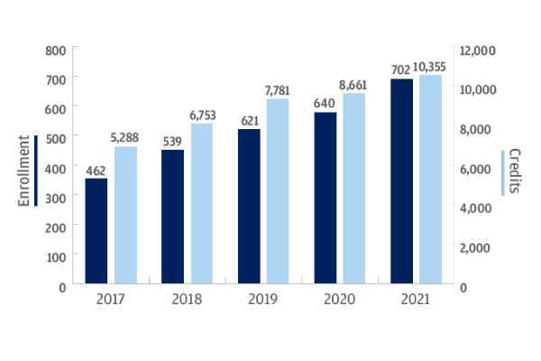 Strict adherence to local, state, and national health guidelines led to the gradual easing of masking, testing, and distancing restrictions that allowed the resumption of near-normal campus life.