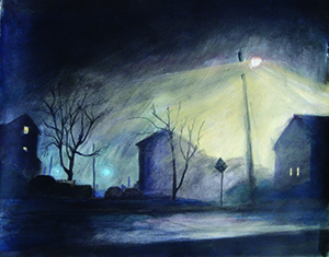 MARGO LEMIEUX, M.F.A, M.ED., professor emerita, exhibited “Mist/Missed,” (above) a series of paintings at the Attleboro Arts Museum community gallery. This series is based on often-overlooked scenes in a neighborhood as its lights and colors change in morning, midday, and evening mist.