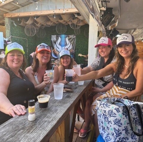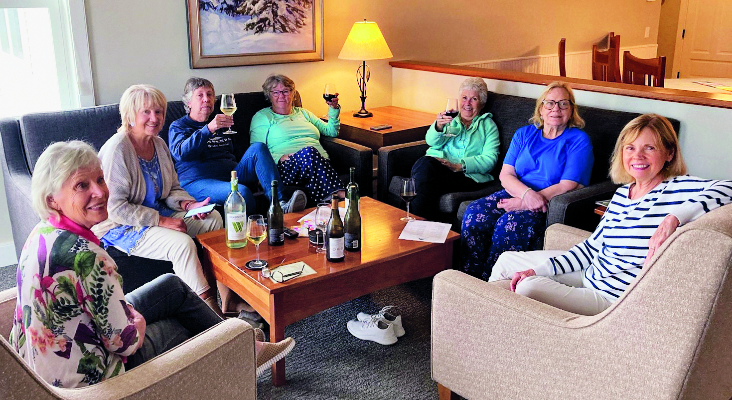 Seven former residents of Nason House gathered in September 2023 at Von Trapp Lodge in Stowe, Vermont, to celebrate Stephanie Pendleton’s 75th birthday. Pictured from left, above: Marnie Ewart Bacot, Stephanie, Carol Spindler Picciano, Libby Wissman Walendziewicz, Livy Haskin Hitchcock, Jackie Hoffmeier Lee, and Pat Torbron Geoghegan. Members of the group get together every few months around Boston and Hartford.