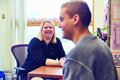 "I had a roommate issue in my freshman year and someone suggested that I talk to the dean of students, but I thought you only met with him if you were in trouble, so I didn't go. I didn't go to the career center until my junior year because I thought it was strictly a job placement service. I can translate that experience to help students who come into my office at Lasell. I don't think of any of their questions as silly, but rather an opportunity to say 'Let me help you with this because I understand how hard it can be and I think it is really impressive that you are the first person going to college in your family and embarking on this journey.'"