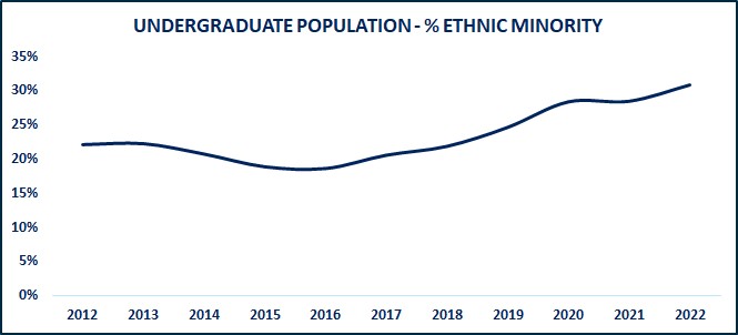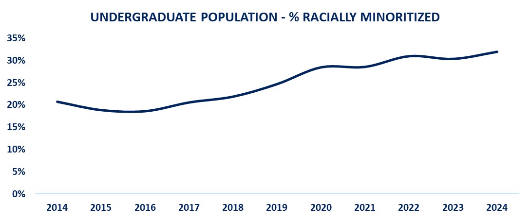 Reporting requirements from the U.S. Department of Education are based on a methodology that may undercount students whose gender identity does not align with their sex assigned at birth. To be more inclusive, the following chart displays information on students that have identified as transgender/non-binary in addition to female/male.