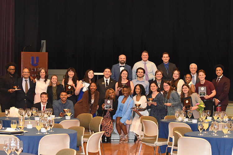 Lasell University's annual Student Leadership Awards Banquet recognized students, faculty, and staff who have had a significant impact on the Lasell community. At the April 2023 ceremony, new SGA leadership was introduced and award winners were acknowledged.