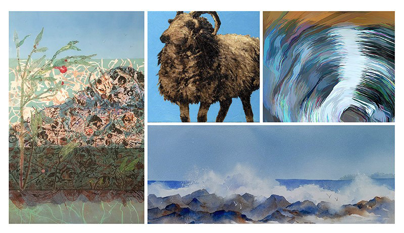 Participating artists from Collective Marks include Lisa Granata, adjunct professor of studio art at Lasell, as well as Susan Clarke, Joan Croce, Connie Grab, Celeste Houle, Carolyn Letvin, George Lowell, Tracey Maroni, Ray Scanlon (in memoriam), Jean Thompson, Andi Warner, and Mary Wojciechowski. The group formed in 2014 and includes digital artists, photographers, painters, printmakers, mixed media artists, and sculptors.